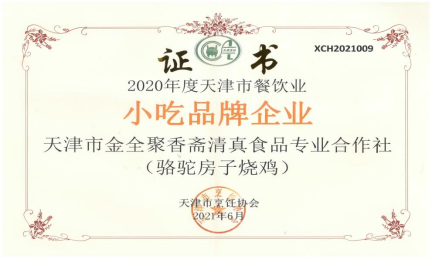 2021年6月被评为天津市餐饮业“小吃品牌企业”,董事长刘金柱被评为天津市餐饮业“新锐企业家”。