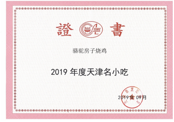 2020年4月26日,“骆驼房子”清真烧鸡被天津市委市政府、天津市文旅局列为天津旅游指定商品暨“天津礼物”,是唯一一家烧鸡品牌。